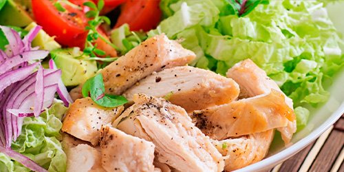 Pollo o atún, lechuga, tomate, queso fresco con ingredientes del día y fruta de temporada.